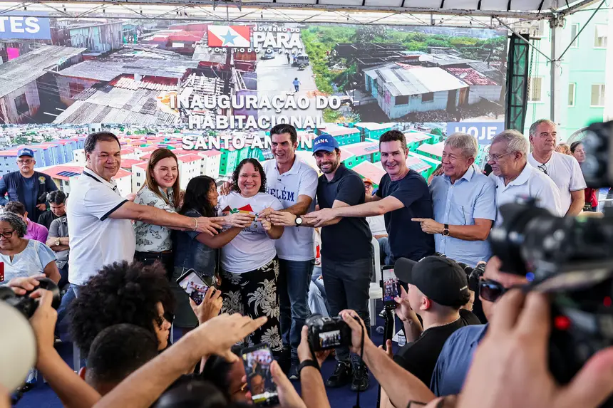 O governador Helder Barbalho participou da entrega acompanhado da vice-governadora do Pará, Hana Ghassan; do ministro das Cidades, Jader Filho; do prefeito de Belém, Igor Normando; do presidente da Companhia de Habitação do Pará (Cohab), Manoel Pioneiro; da primeira-dama do Estado, Daniela Barbalho, e de outras autoridades.